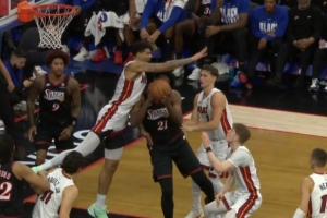 GIF-恩比德被顶到右侧肋部
