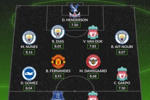 中场:戈麦斯(布莱顿)、B费(曼联)、达姆斯高(布伦特福德)、加克波(利物浦)