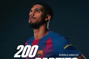 阿劳霍此役为巴萨替补出场,这是他为巴萨出战的第200场比赛,巴萨官方社媒晒出海报,对他表示祝贺。